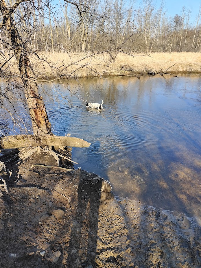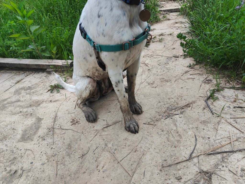 We saw birds (including a heron) squirrels, and rabbits during the walk, which certainly kept Zorya interested!